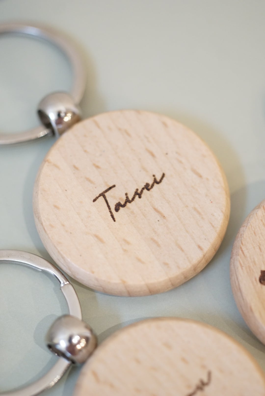 木の温かみを感じさせるシンプルなデザインは、カバンや鍵のアクセントにぴったり。