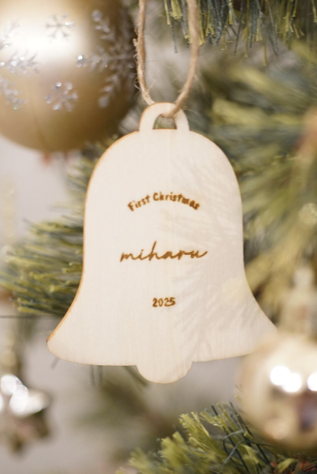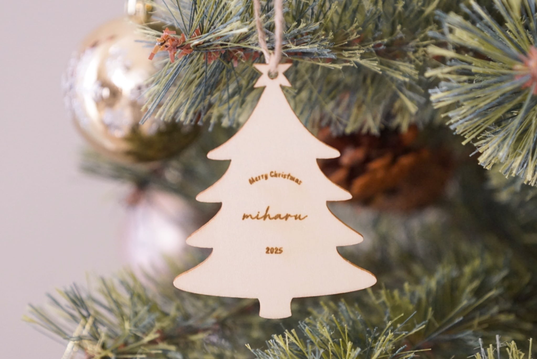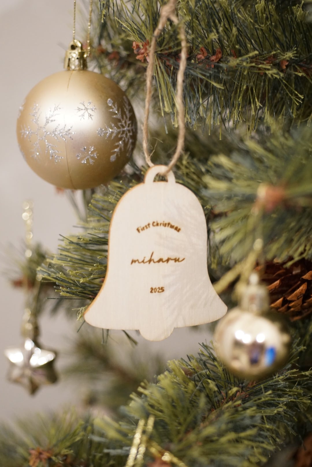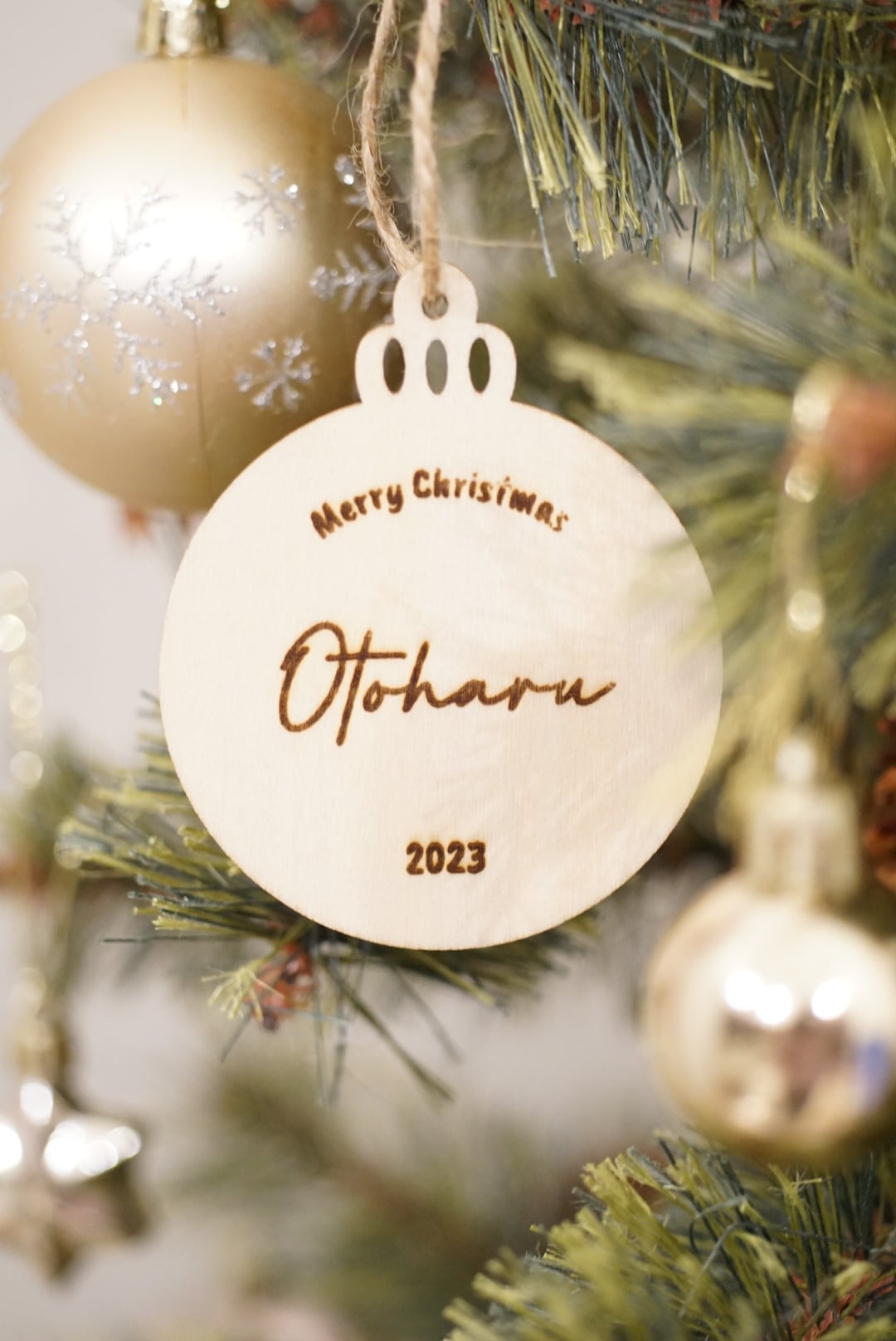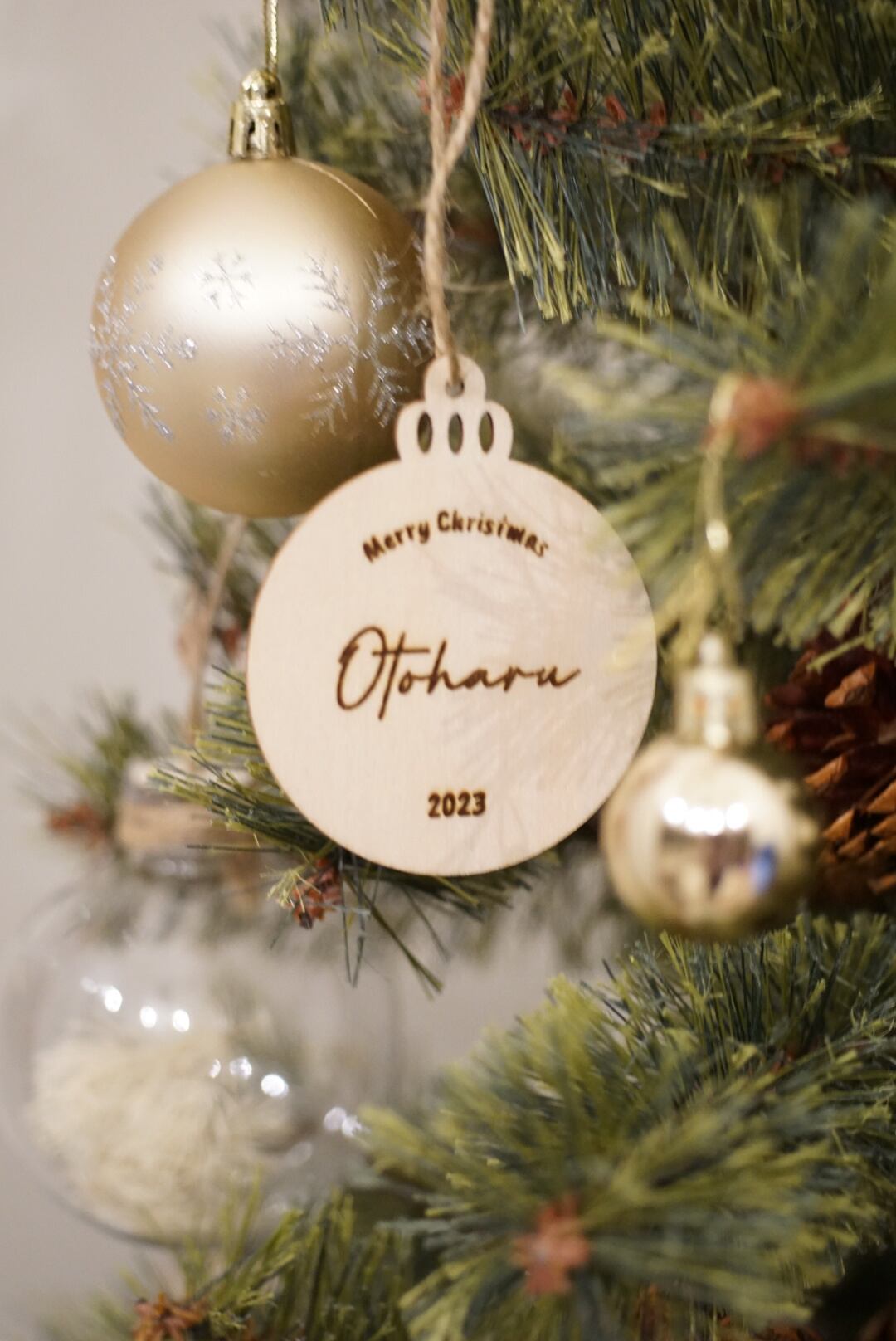 お好きなお名前を刻印できる木製の特別なオーナメントです。 温かみのある素材感が魅力で、大切な瞬間を形に残すことができます。