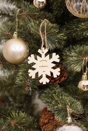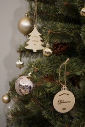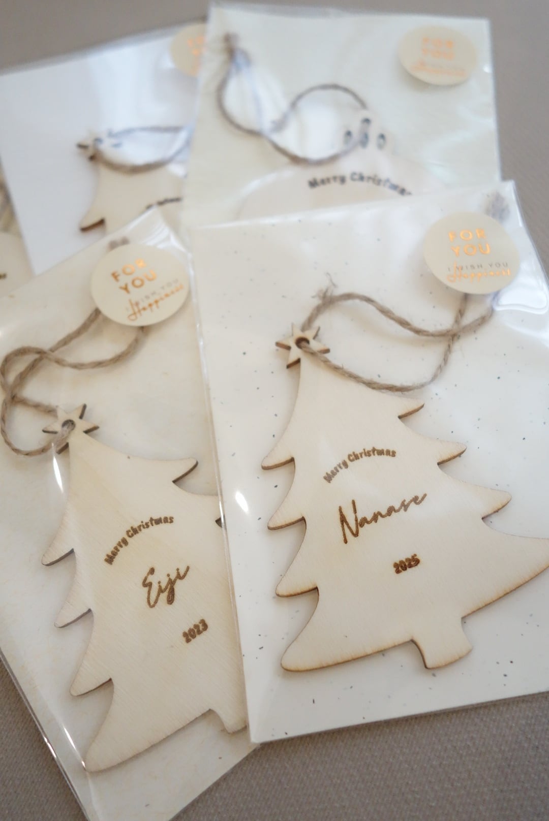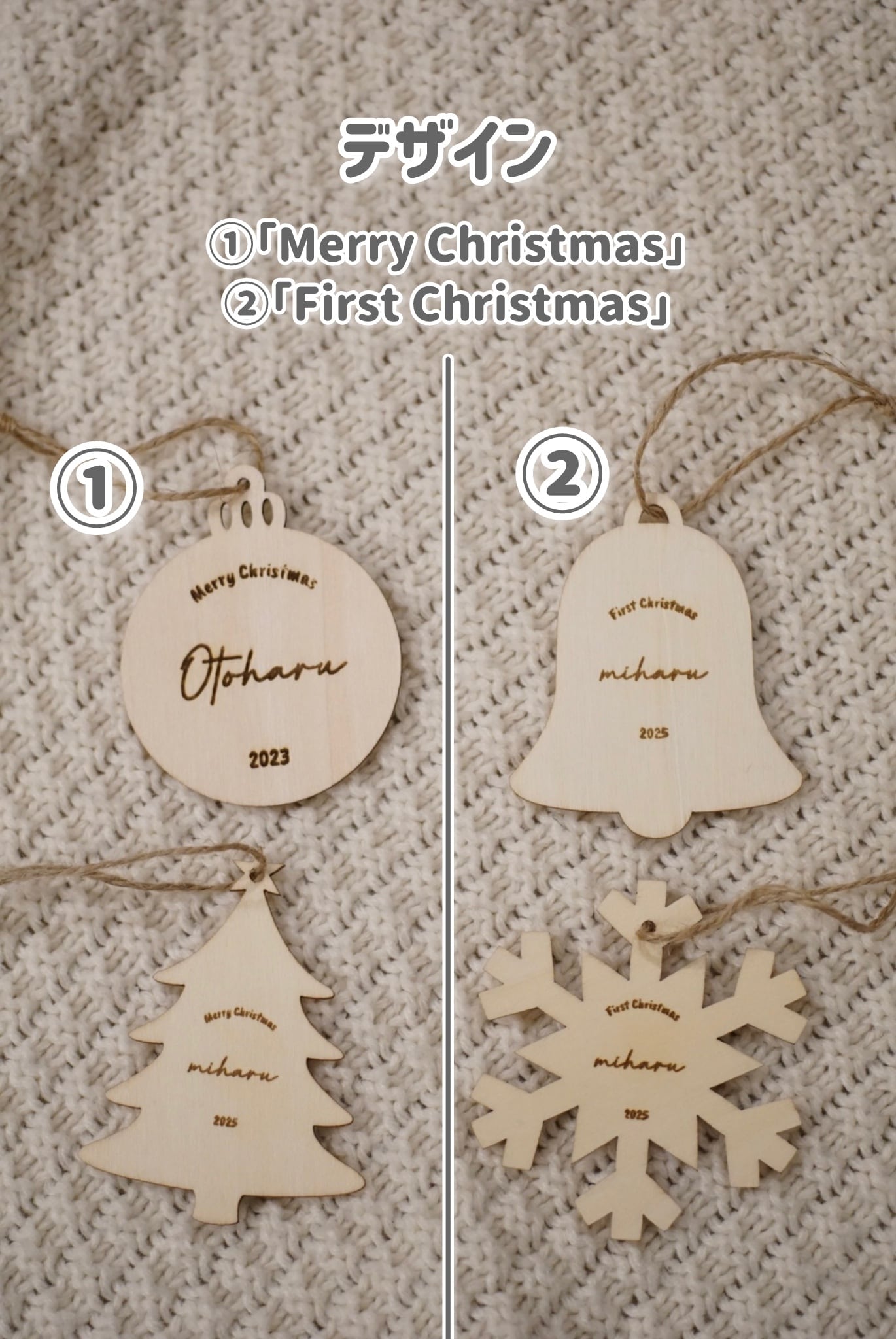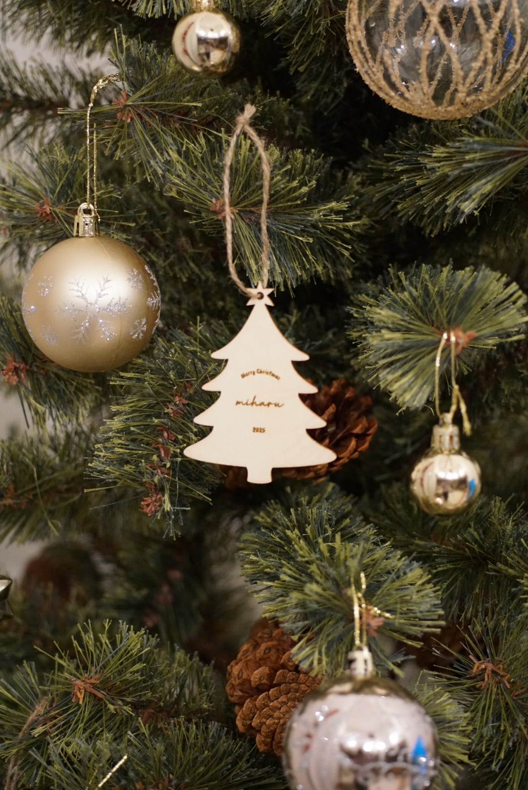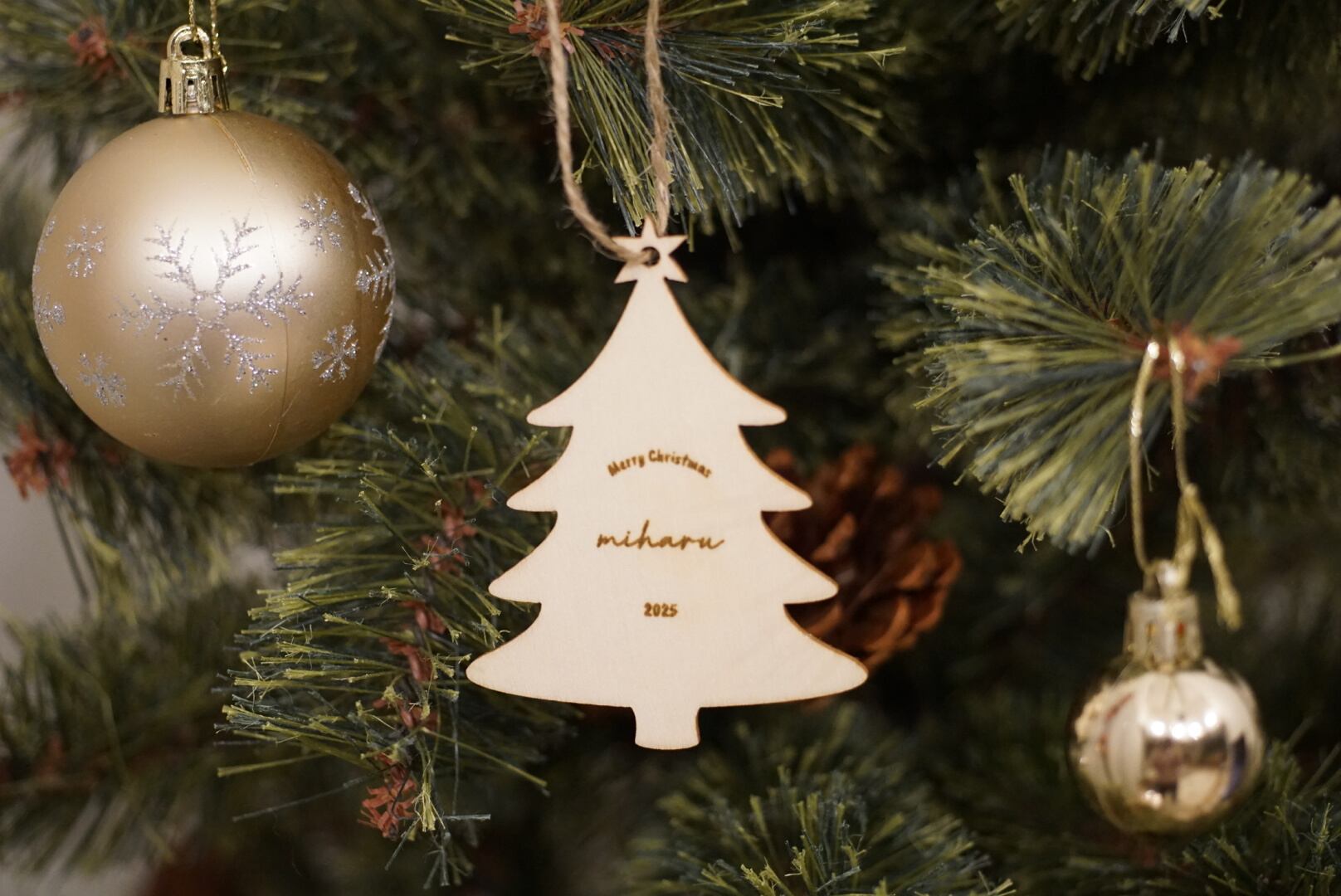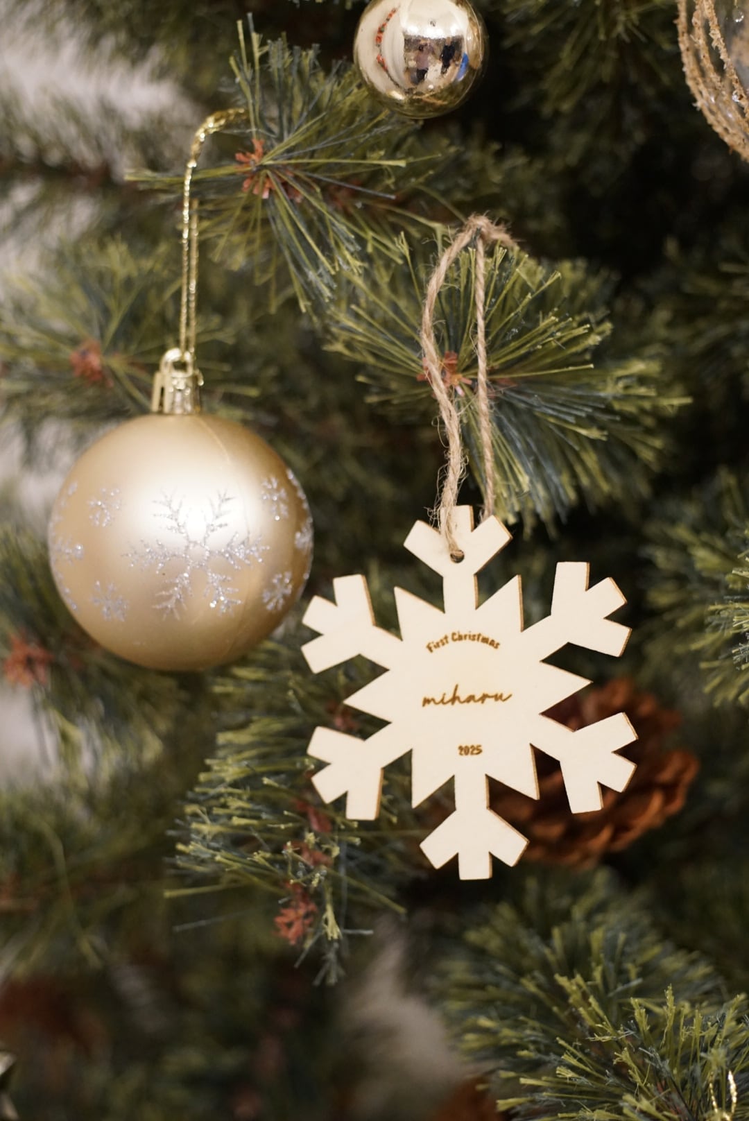 お好きなお名前を刻印できる木製の特別なオーナメントです。 温かみのある素材感が魅力で、大切な瞬間を形に残すことができます。