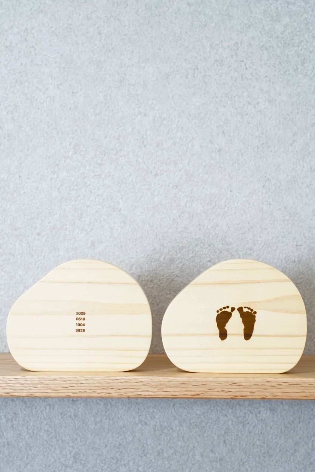 購入後、アプリ内メッセージ機能(HPからご購入の場合はページ下部の【ショップに質問する】)もしくはInstagramDMより手足形の写真をお送りください。手形足形合計2つまで刻印可。
