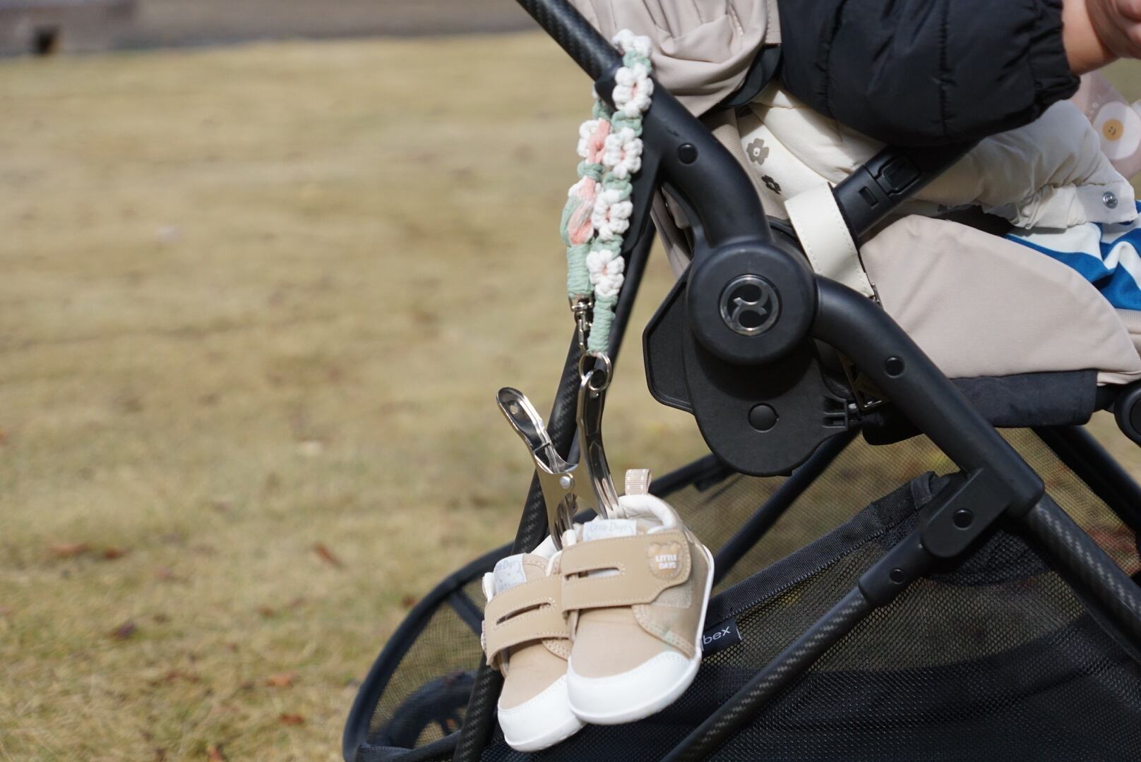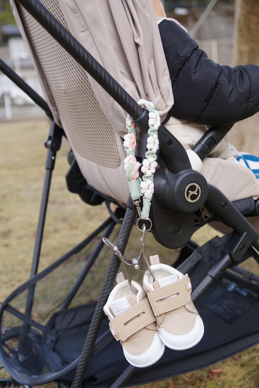 ナスカンを使用しているためどこにでも簡単にとりつけられます。また靴を挟む部分はクリップ式のため簡単に取り付けられます。